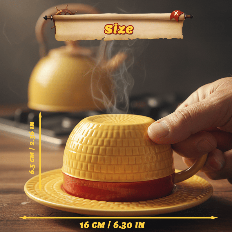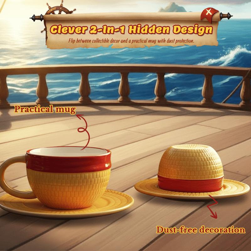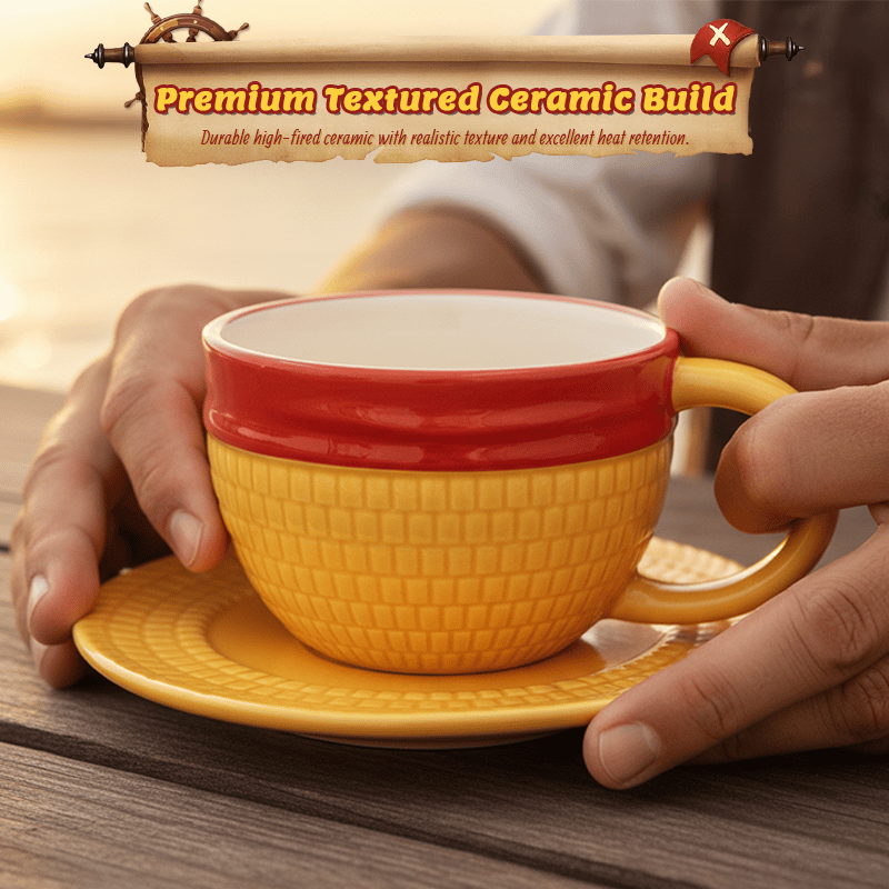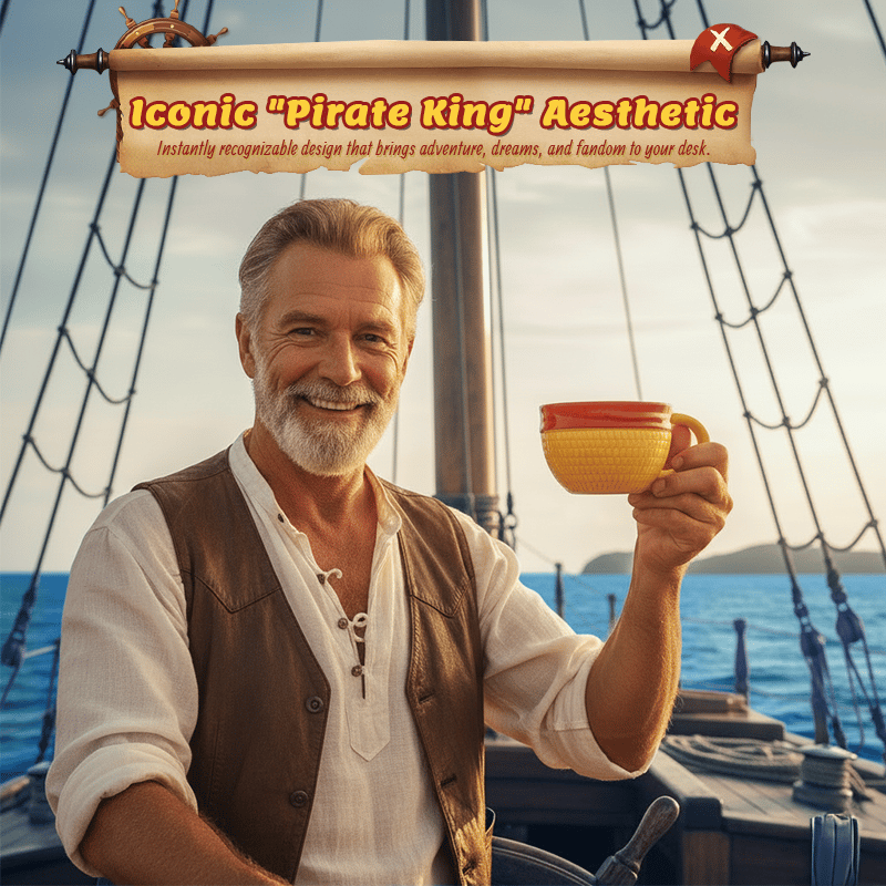 Capture the spirit of the open seas with a design that is instantly recognizable to those in the know. The vibrant yellow straw-like texture and the bold red ribbon band are meticulously crafted to replicate the legendary headwear of the world’s most free-spirited captain. It’s not just a mug—it’s a statement piece that brings adventure and big dreams to your desk.